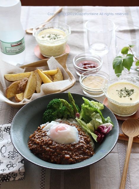 キーマカレー と冷製コーンスープ Clairefontaine